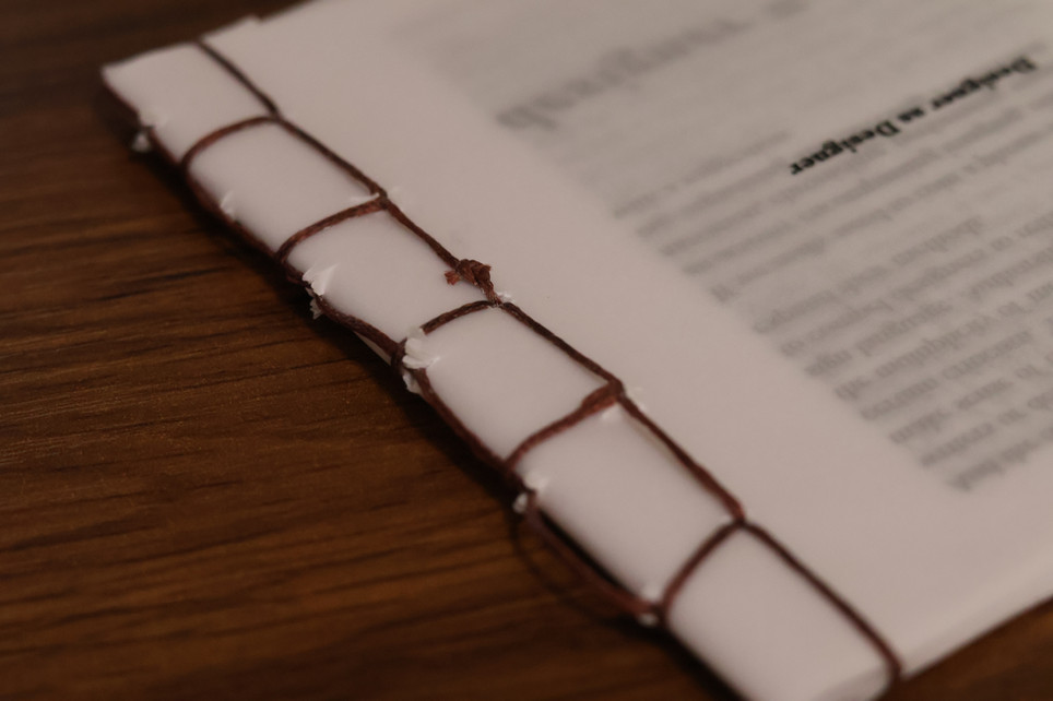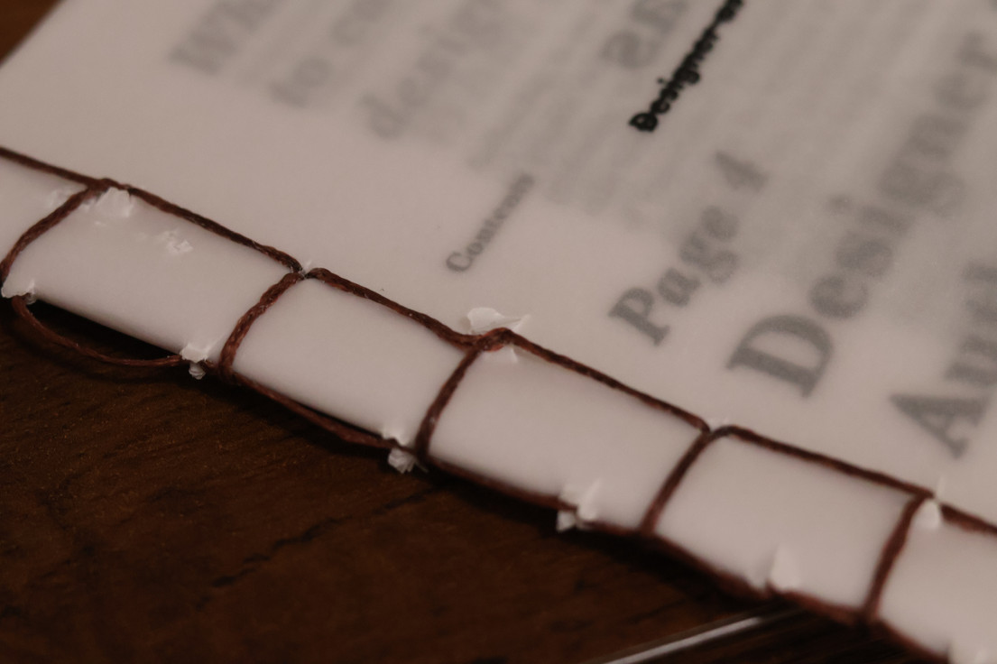 The two essays were selected to stage a visual and conceptual debate around “good” typesetting. The text of The Crystal Goblet is flipped to reject the passive role Warde assigns to design, making the layout itself a counterargument. Placing Designer as Author on odd pages and The Crystal Goblet on even pages reinforces this dialogue, with vellum paper enabling a layered, translucent interplay that reflects the complexity of the debate.