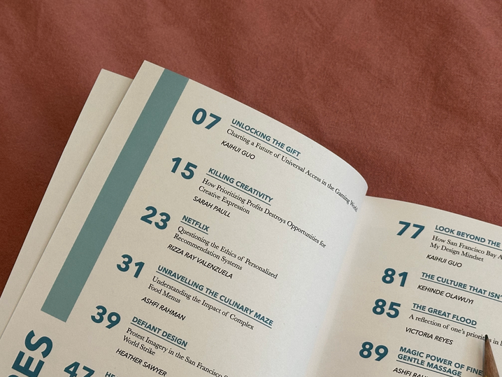 As one of the contributors, I authored both types of articles and also took on the role of organizing the entire publication. From curating the flow to arranging the content and layout, I shaped the magazine into a cohesive experience that reflects both individual voices and a collective vision.